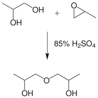 Le dipropylène glycol est issu du propane-1,2-diol et du 1,2-époxypropane[7] :