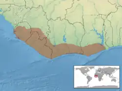 Cette espèce se rencontre de la Sierra Leone jusqu'à l'Ouest du Cameroun[2].