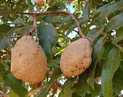 Le fruit est une drupe ovoïde, légèrement aplatie et de couleur brune[3], d'environ 7 cm de long, à la pulpe odorante qui est consommée par le bétail et les animaux sauvages. Il contient seule graine (amande), elle aussi comestible et dont le goût évoque la cacahuète. On lui attribue localement des vertus aphrodisiaques.