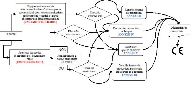 L’équipement non radio, ou l’équipement radio sans émetteur (récepteur uniquement) pouvait utiliser un processus interne (autoévaluation). Dans ce cas, le passage par un organisme notifié et le contrôle de fabrication par une assurance qualité sont facultatifs.