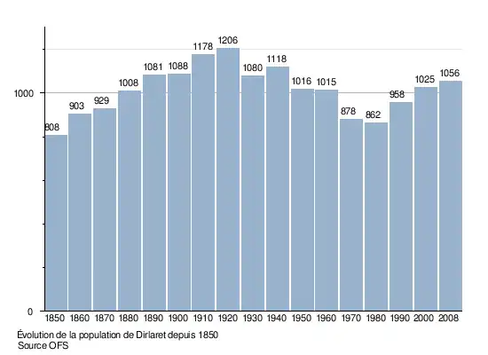 Selon l'Office fédéral de la statistique, Dirlaret compte 1 152 habitants en 2023[1]. Sa densité de population atteint 158 hab./km2.