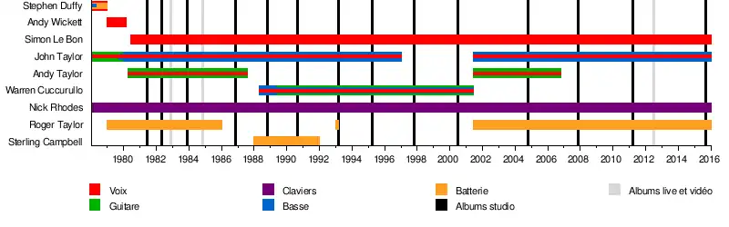 « Timeline » de la composition du groupe