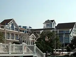 Le complexe hôtelier permet de revivre dans une station balnéaire de la côte est des États-Unis, principalement les plages de la Nouvelle-Angleterre durant les années 1870 avec un bâtiment de couleur bleu et blanc.