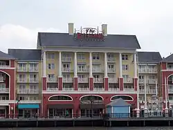 - l'aile du Disney's BoardWalk Inn de cinq étages maximum avec une cour et le centre de congrès (côté parking)