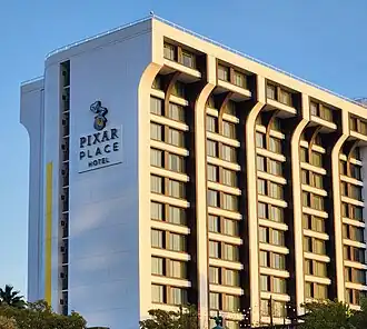 Le , Disney rachète le Pan Pacific Hotel[3],[4], qui sera rebaptisé plus tard Disneyland Pacific Hotel en 1996 puis Disney's Paradise Pier Hotel (nom d'un thème du second parc). Entre-temps, des travaux sont entamés pour aménager des trottoirs et un jardin entre les deux hôtels Disney et prennent fin le [1].