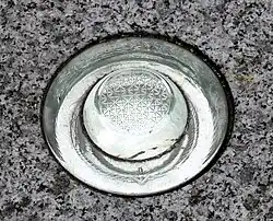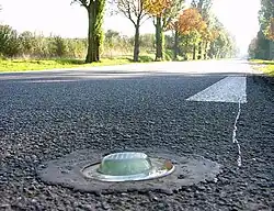- forme spéciale de verre de quelques centimètres de diamètre et d'épaisseur insérée dans la route ou le sol du lieu.
