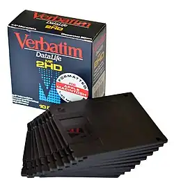 Les disquettes 5 ¹⁄₄ pouces étaient conditionnées par dix dans une boîte en carton. Chaque disquette étant rangée dans une pochette de protection en papier. La boîte comprenait aussi dix étiquettes autocollantes permettant à l'utilisateur d'inscrire la description du contenu de la disquette et dix petits autocollants rectangulaires permettant d'obturer l'encoche de permission d'écriture.