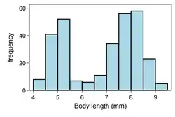 Une condition nécessaire pour qu'un mélange homoscédastique de deux distributions normales — i.e. dont les écarts-types sont égaux — soit bimodal est que leurs moyennes diffèrent d'au moins 2 fois l'écart-type commun[8].