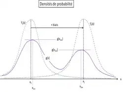 Si le biais est suffisant, le mélange de ces deux distributions est bimodal. Soient :