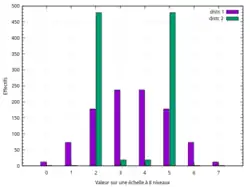 Un autre exemple montre deux distributions portant sur la même variable (échelle de notation à 8 niveaux) :