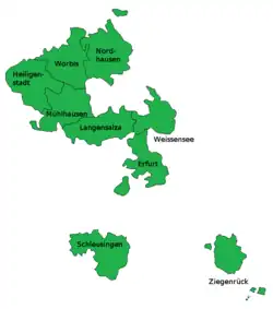 | Arrondissement d'Heiligenstadt (de) (ancien nom : Arrondissement d'Obereichsfeld) |