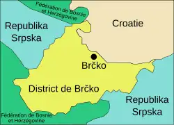 À la fin de la guerre d'indépendance de Bosnie-Herzégovine en 1995, le territoire de la municipalité de Brčko fut divisé entre la république serbe de Bosnie (49 % de la superficie) et la fédération de Bosnie-et-Herzégovine (51 % de la superficie) selon les accords de Dayton.
