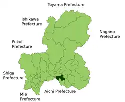 Le district de Kani (vert foncé) dans la préfecture de Gifu (vert clair)