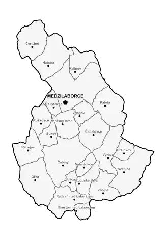 Brestov nad Laborcom, Čabalovce, Čabiny, Čertižné, Habura, Kalinov, Krásny Brod, Ňagov, Oľka, Oľšinkov, Palota, Radvaň nad Laborcom, Repejov, Rokytovce, Roškovce, Sukov, Svetlice, Valentovce, Volica, Výrava, Zbojné, Zbudská Belá