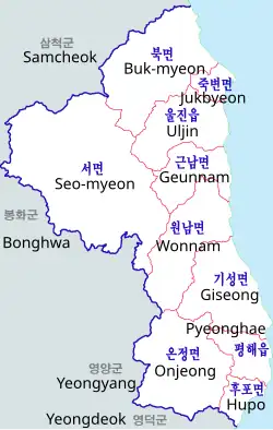 | Hupo (후포면, 厚浦面) | 8 512 | 22,16 | 384 | myeon |
