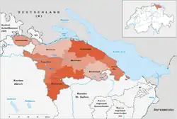 Le canton s'étend également sur une partie du lac de Constance (128,25 km²) qui n'appartient à aucun district (ou aucune commune) ; le total de superficie du canton s'élève par conséquent à 990.9 km².