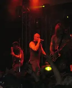 - 1 2 (en) « Disturbed Debut New Bassist at Hometown Gig », Blabbermouth.net, Roadrunner Records, (consulté le ).