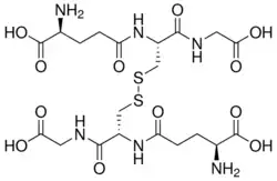 Le disulfure de glutathion (GSSG) est un dimère de molécules de glutathion unies par un pont disulfure[2].