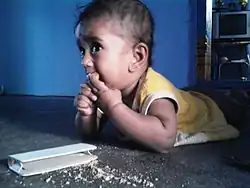 À la naissance, les bébés ont un réflexe d'extrusion ou haut-le coeur lorsqu'ils introduisent des objets dans la bouche, la langue poussant l'objet hors de la bouche. En grandissant, celui-ci disparaît et lui permet alors d'avaler des aliments de taille et de texture appropriée.