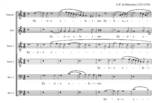 - ↑ Car, les œuvres de la polyphonie de la Renaissance étaient écrites en faveur des garçons desquels la voix reste plus pure que celle des femmes. En effet, la voix de ces dernières contient plusieurs sons en octave. C'est pourquoi les qualités entre deux sont différentes. Donc, afin de rétablir la couleur originale d'harmonie conçue par les compositeurs de la renaissance, il vaut mieux adopter les voix de garçon. Par ailleurs, par exemple en France, dans les églises, la voix de femmes était toujours interdite (« Que les femmes se taisent dans les assemblées » (saint Paul de Tarse, Première épître aux Corinthiens, 14, 34 - 35)) jusqu'à ce que le roi de France Louis XIV charge de chanter à une de deux filles du compositeur Michel-Richard Delalande à la Chapelle royale (Ancien Régime), en septembre 1702. Cela provoqua une grosse opposition des religieux tandis que Delalande commença à écrire ses pièces pour son épouse et ses filles, toutes chanteuses.