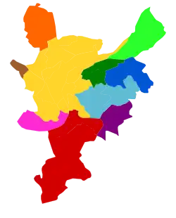 La commune de Liège compte 10 sections[1]. Les anciennes communes d'Angleur, Bressoux, Chênée, Glain, Grivegnée, Jupille-sur-Meuse, Rocourt et Wandre furent intégrées à la ville de Liège ainsi qu'un ancien quartier d'Ougrée, Sclessin, et quelques rues d'Ans, Saint-Nicolas et Vottem), lors de la fusion des communes en 1977[réf. nécessaire].