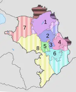 La République du Haut-Karabagh était organisée en huit divisions administratives. De ces dernières, sept étaient des régions ; Stepanakert, la capitale du pays, était une ville dotée d'un statut spécial[1].