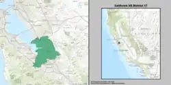 Depuis le redécoupage de 2020, le 17e district congressionnel de Californie occupe la région de Tri-City de la région de la Baie de San Francisco. Il occupe les frontières occidentales des comtés d'Alameda et de Santa Clara.