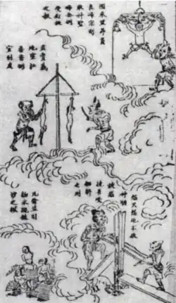 - 三塗 : les trois tortures. Brûlé par le feu (火塗), découpé par un couteau (刀塗), déchiré par des bêtes (血塗, littéralement, « torture du sang »).