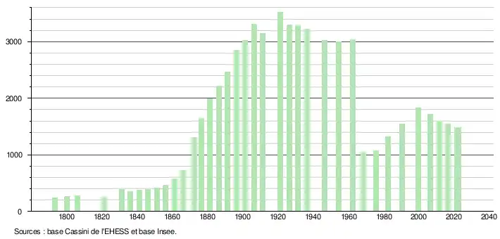 1 485 hab. (2022 en évolution de −3,57 % par rapport à 2016)