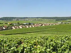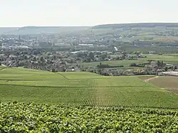 Vue de Dizy et de son église, depuis la montagne de Reims.