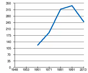En 1991, sur un total de 4 790 habitants, la population se répartissait de la manière suivante[3] :