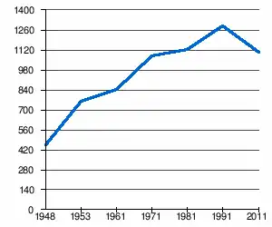 - 1 2 (sq) « Évolution de la population 1948-2011 », sur pop-stat.mashke.org (consulté le ).