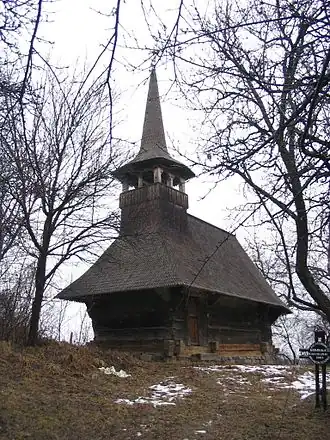 - Dobrin, église orthohdoxe en bois des Sts Archanges Michel et Gabriel (Sf. Arhangeli Mihial și Gavrili) datant de 1720[7].