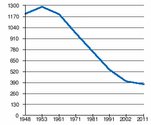 | 1 200 | 1 286 | 1 197 | 971 | 752 | 541 | 405[2] | 368[1] |