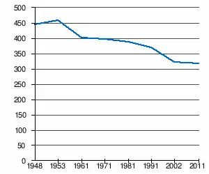 - 1 2 (sr + en) « Livre 20 : Vue d'ensemble comparative de la population en 1948, 1953, 1961, 1971, 1981, 1991, 2002 et 2011, données par localités) » [PDF], pages du recensement de 2011 en Serbie - Institut de statistique de la république de Serbie, (consulté le )