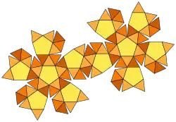 Le dodécaèdre possède 92 faces dont 12 sont des pentagones et les 80 autres sont des triangles équilatéraux. Il possède aussi 150 arêtes et 60 sommets. Il a deux formes distinctes, qui sont les images dans un miroir (ou énantiomorphes) l'une de l'autre.