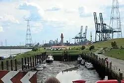 - Doel possède un port de plaisance, constitué d’un unique bassin à marée, et un embarcadère où vient accoster le bac de Lillo-Fort, lequel effectue la traversée de l’Escaut.