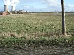 Le vieux moulin, avec à l'arrière-plan les tours de refroidissement de la centrale nucléaire | |||||