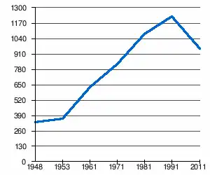 - 1 2 (sq) « Évolution de la population 1948-2011 », sur pop-stat.mashke.org (consulté le ).