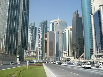 La corniche qui s'étend sur 7 km est l'un des principaux lieux d'Ad Dawhah avec le City center de Doha, un des plus grands centres commerciaux du Moyen-Orient.