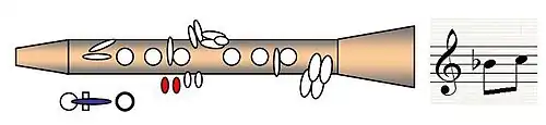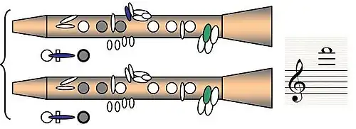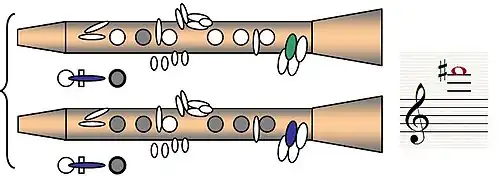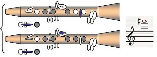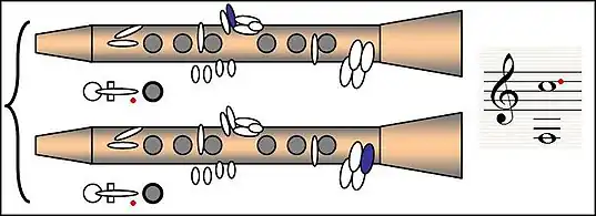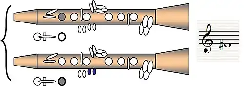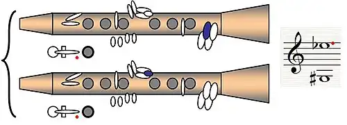 Le deuxième doigté n'est possible que sur les clarinettes disposant de cette clef. |
