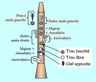 Généralement, il faut boucher les trous avec la pulpe des doigts (la partie charnue) en arrondissant un peu les doigts, comme pour saisir un crayon du bout des doigts.