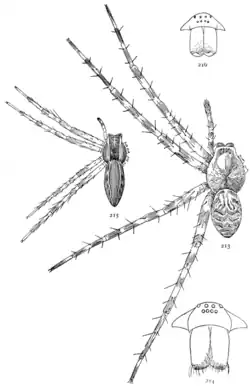 - 1 2 Bishop, 1924 : « A revision of the Pisauridae of the United States. » New York State Museum Bulletin, no 252, p. 1-140.