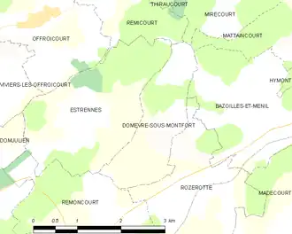 - ↑ « Orthodromie entre Domèvre-sous-Montfort et Mirecourt », sur fr.distance.to (consulté le ).