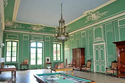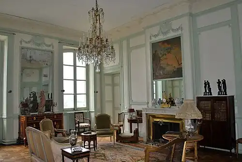 Les pièces de réception ont conservé leurs lambris, leurs stucs et leurs cheminées.