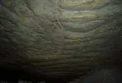 La partie supérieure de la strate exploitée est, par endroits, constituée d'empreintes de rides de plage formées sur le fond marin de l'époque[3]. On peut observer leur « contre-empreinte fossilisée » au niveau de certains plafonds. Elles ont permis d'estimer la profondeur de la mer (de quelques centimètres à 2 mètres) et l'orientation de la plage (sud - sud-est) à l'époque de leur formation[3].