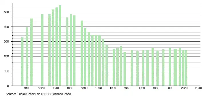 - ↑ Fiches Insee - Populations de référence de la commune pour les années 2006, 2007, 2008, 2009, 2010, 2011, 2012, 2013, 2014, 2015, 2016, 2017, 2018, 2019, 2020, 2021 et 2022.