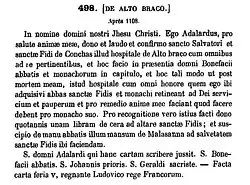 - Gustave Desjardins (Éditeur scientifique), Cartulaire de l'abbaye de Conques en Rouergue, Paris, A. Picard, , 518 p., in-8 (BNF 34114898, lire en ligne) :Charte de la donation d'Adalard. sur Gallica