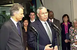 Ce discours[14] aux accents gaulliens qui défie l'hégémonisme américain, lui vaut d'être applaudi, chose rare en cette enceinte[10]. Dominique de Villepin considère la « guerre contre le terrorisme » du président américain George W. Bush maladroite et contre-productive. Selon Dominique de Villepin, l'appel à la guerre contre le terrorisme est risqué, parce qu'il donne aux différents groupes terroristes une légitimité et une audience auxquelles ils aspirent. Il valorise le combat qu'ils conduisent, avec les armes de l'aveuglement et du fanatisme. Il leur accorde le statut d'opprimé dont ils ont besoin pour répandre le plus largement possible leurs thèses extrémistes[15]. Le problème du terrorisme doit donc être résolu avec intelligence et non avec brutalité[réf. nécessaire].