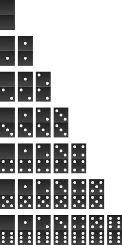 En général, le nombre de points va de 0 à 6, on parle de jeu double-six (du nom du plus gros domino). Le zéro est symbolisé par une absence de points. On trouve aussi des variantes allant de 0 à 9, de 0 à 12, de 0 à 15 et de 0 à 18. Le nombre de dominos composant un jeu, où les points vont de 0 à N, est égal à la somme des nombres de 1 à N+1.